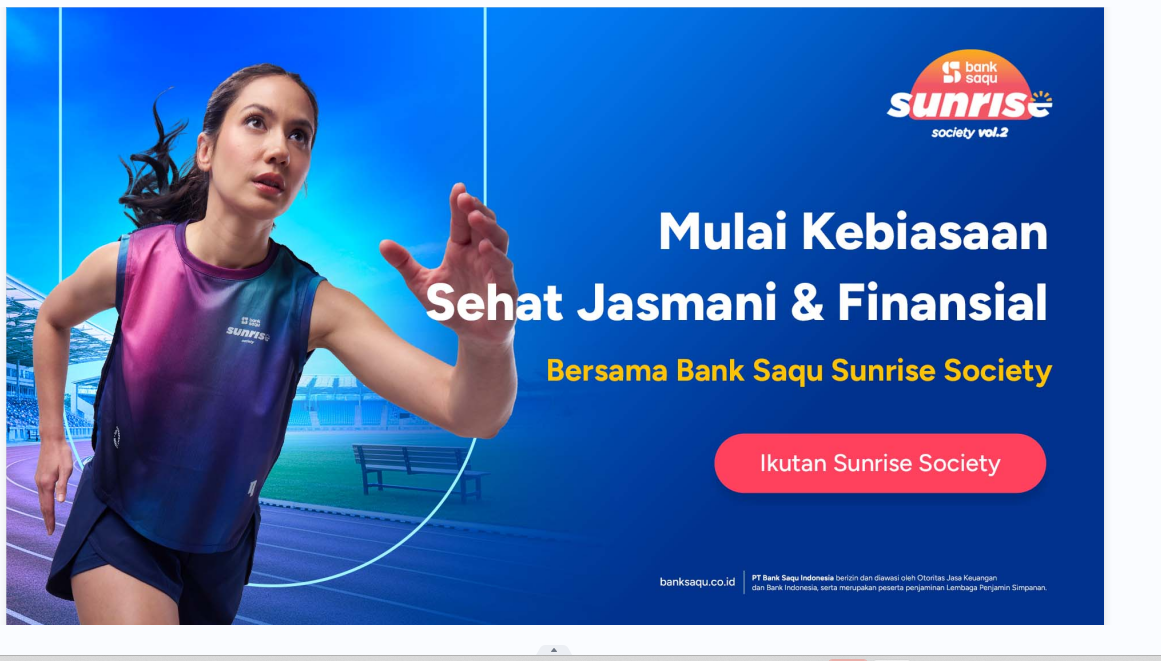 Upaya membangun kebiasaan positif tersebut tidak hanya diwujudkan melalui layanan perbankan, tetapi juga melalui pendekatan gaya hidup yang relevan dengan keseharian masyarakat. Salah satunya melalui Sunrise Society, sebuah komunitas yang mendorong budaya bangun pagi, hidup aktif, dan produktif sebagai bagian dari rutinitas harian.