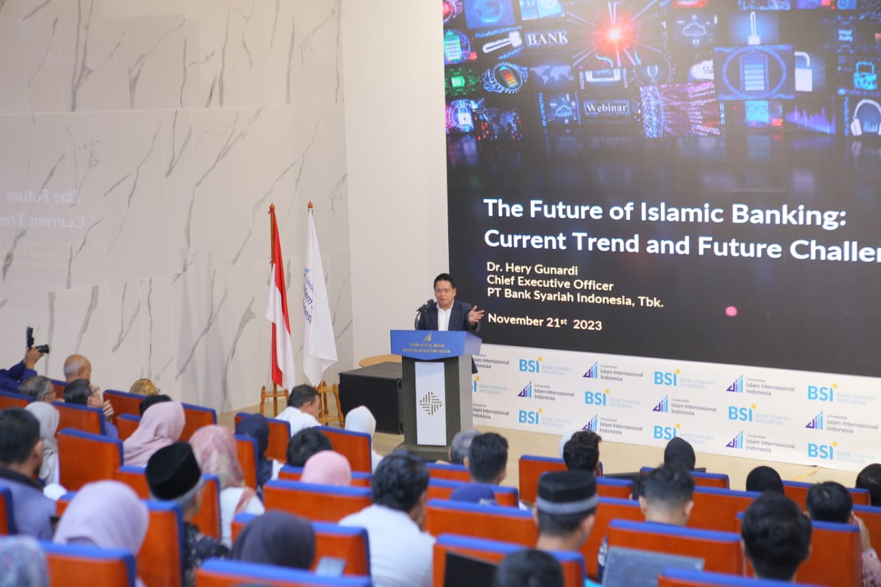 Direktur Utama PT Bank Syariah Indonesia Tbk (BSI) – Hery Gunardi menjabarkan, tantangan yang dihadapi sektor perbankan syariah di Indonesia dan proyeksi masa depan dalam konteks global di hadapan para mahasiswa Universitas Islam Internasional Indonesia (UIII). Kegiatan tersebut sebagai upaya BSI dalam memberikan literasi keuangan syariah kepada kalangan generasi muda.