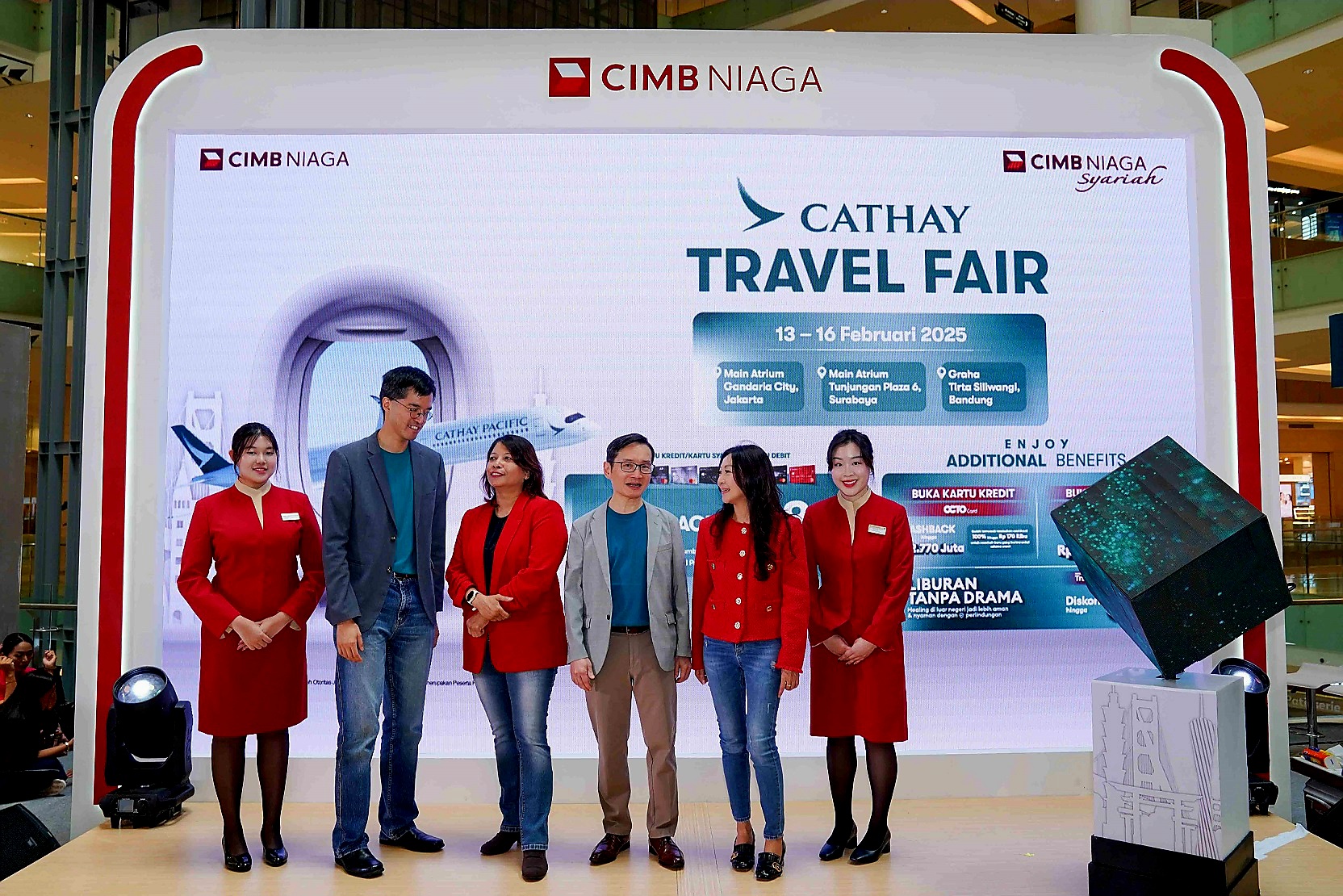 Jakarta – PT Bank CIMB Niaga Tbk (CIMB Niaga) bersama Cathay Pacific kembali menggelar Cathay Travel Fair 2025 yang menawarkan berbagai promo perjalanan wisata ke destinasi favorit dunia. Pameran yang digelar dalam rangka memeriahkan HUT ke-70 CIMB Niaga ini, berlangsung pada Kamis-Minggu, 13-16 Februari 2025 di Main Atrium Gandaria City (Jakarta), Main Atrium Tunjungan Plaza 6 (Surabaya), dan Graha Tirta Siliwangi (Bandung).