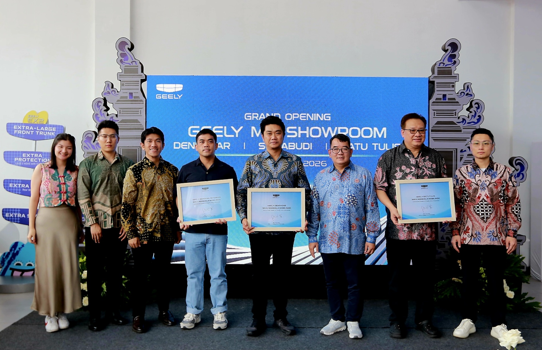 Businessasia.co.id (Denpasar) – Geely Auto Indonesia memulai tahun 2026 dengan langkah ekspansif melalui peresmian diler pertamanya di Denpasar. Bersama Maju Mandala Group, dua diler baru juga resmi dibuka di Bandung dan Jakarta Pusat. Langkah ini menjadi bagian dari strategi memperkuat kehadiran Geely di pasar Indonesia serta memperluas akses masyarakat terhadap kendaraan elektrifikasi berteknologi modern dan berkelas global.
