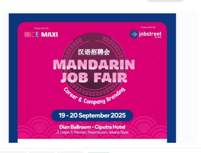 Informasi lebih lanjut mengenai kegiatan Mandarin Job Fair 2025 dapat dilihat di website Jobstreet https://id.jobstreet.com/id/page/mandarin-job-fair-2025 .