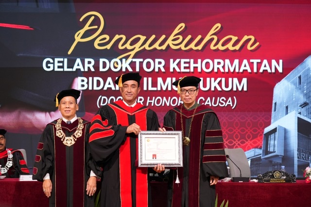 Rektor Untar menjelaskan bahwa penganugerahan gelar Doktor Honoris Causa kepada Komjen Pol. Suyudi Ario Seto merupakan bentuk pengakuan akademik atas kiprahnya dalam merumuskan kebijakan, memperkuat penegakan hukum, serta memimpin upaya pemberantasan narkotika yang berkaitan erat dengan aspek keamanan nasional dan pembangunan hukum.