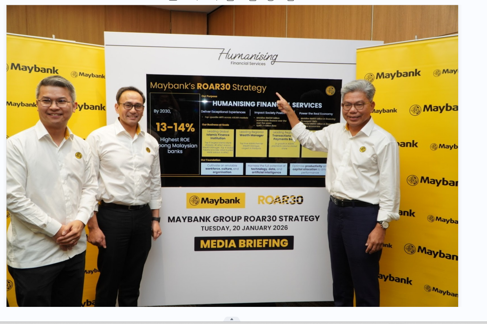 “Seiring dengan selesainya strategi M25+, strategi lima tahun ke depan ini semakin menegaskan tujuan Maybank Group dengan fokus menciptakan nilai tambah bagi para pemegang saham melalui peningkatan ROE yang berkelanjutan. Melalui strategi ROAR30, kini Maybank Group memasuki fase percepatan pertumbuhan dengan membangun bisnis berskala besar untuk memaksimalkan peran bank di pasar ASEAN yang kian signifikan.”