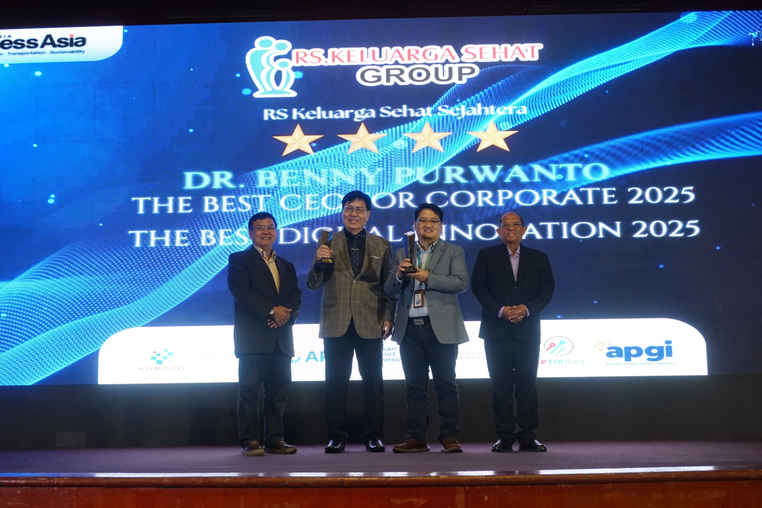Dalam ajang IDIA 2025 ini, PT Keluarga Sehat Sejahtera (PT. KSS) dianugerahi penghargaan untuk kategori Best Digital Innovation 2025. Sedangkan dr. Benny Purwanto, MARS, P.H.Eng – Direktur Utama PT. Keluarga Sehat Sejahtera meraih penghargaan The Best CEO For Corporate 2025.