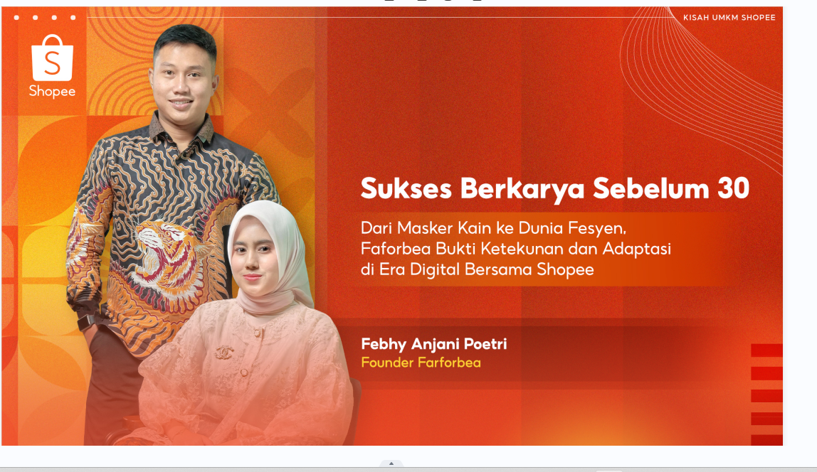 Febhy Anjani Poetri, Founder Farforbea, mengatakan, “Semua ini berawal dari selembar kain masker di masa pandemi. Dari proses itu saya belajar banyak hal, mulai dari mengelola bahan, memahami kebutuhan pasar, hingga melayani pelanggan secara online melalui Shopee. Saat masker tak lagi dibutuhkan, saya sadar bahwa semangat berkreasi tidak boleh berhenti di situ. Dunia fesyen terasa begitu hidup dan penuh peluang, hingga akhirnya saya mulai membangun Faforbea dengan fokus bisnis berbeda yakni, fesyen perempuan. Shopee menjadi ruang pertama kami untuk tumbuh dan belajar, dari satu masker hingga ratusan koleksi pakaian.”