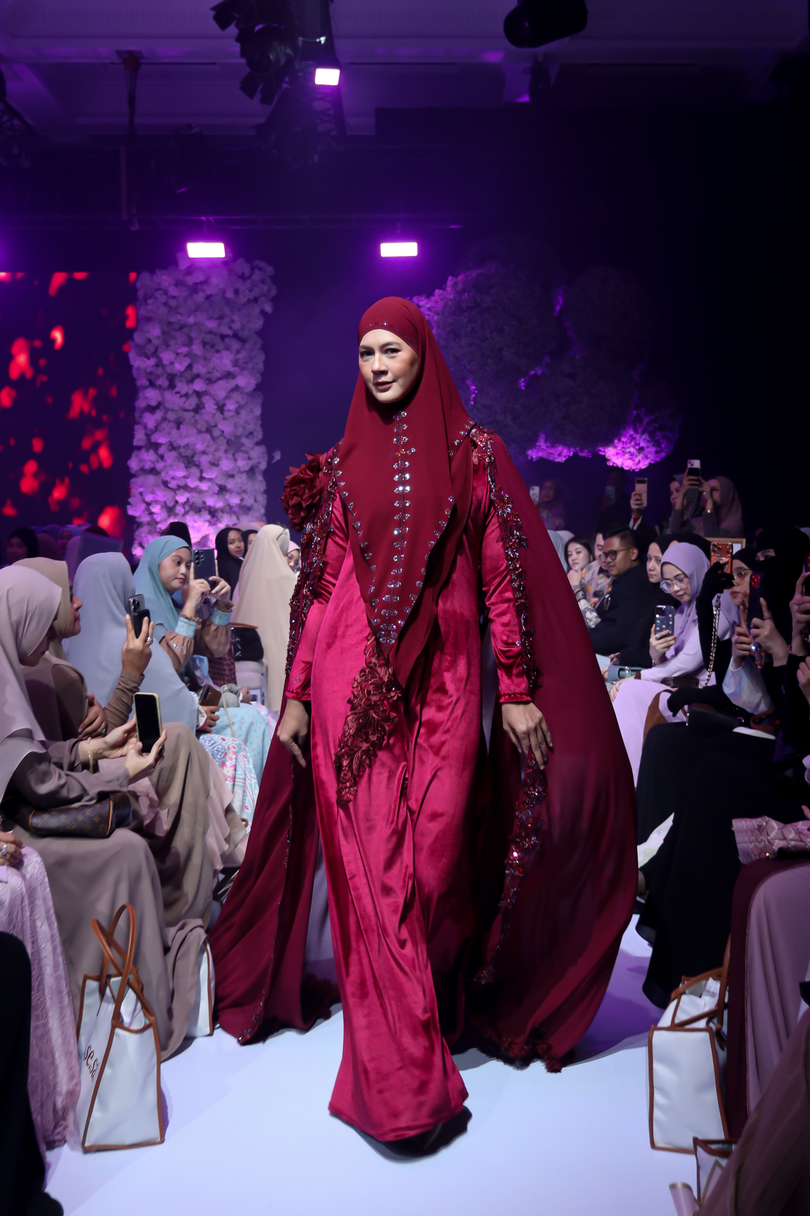 Sementara itu, Celine Evangelista tampil memukau dalam rancangan bernuansa glamor-syar’i dengan bahan tulle detail kristal dan siluet flowy yang merepresentasikan kekuatan sekaligus kelembutan perempuan Muslim modern.