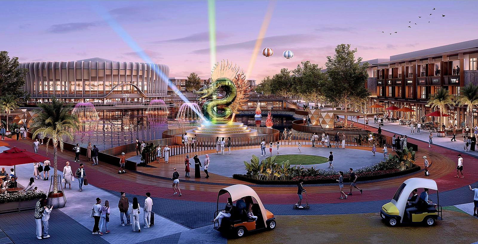 Untuk atraksi utama kawasan, Aurum Dancing Fountain, TANA Group bekerja sama dengan vendor spesialis air mancur menari dari Tiongkok, Hebei Taihang Environmental Art Fountain Co., Ltd. perusahaan teknologi tinggi nasional yang mengkhususkan diri dalam desain dan pengembangan pertunjukan air mancur artistik dan multimedia kelas dunia. Dengan pengalaman lebih dari 3.000 proyek di berbagai negara, Taihang menghadirkan landmark water show berskala besar yang memadukan seni, teknologi, dan inovasi visual yang menciptakan pertunjukan visual dan akan menjadi magnet kunjungan kawasan pada malam hari.