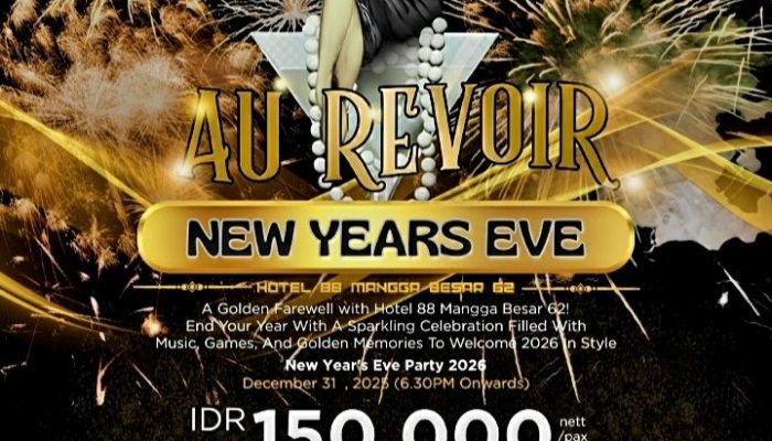 Sebagai puncak perayaan, Hotel 88 Mangga Besar 62 menghadirkan AU REVOIR – New Year’s Eve Celebration pada 31 Desember 2025, dengan harga IDR 150.000 nett per orang. Mengusung tema glamour dengan konsep mewah dan elegan bernuansa emas, AU REVOIR akan menghadirkan suasana pergantian tahun yang istimewa melalui gala dinner, hiburan DJ & live music, pertunjukan kembang api serta berbagai doorprize menarik bagi para tamu yang hadir.